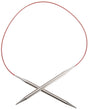 These surgical stainless steel circulars have a smooth, satin-sheen finish and memory-free, multi-strand, steel, nylon-coated, red cable. Lace tips are machine-precisioned. This package contains one pair of size 17/12.75mm circular knitting needles with a 24 inch cord. Imported.