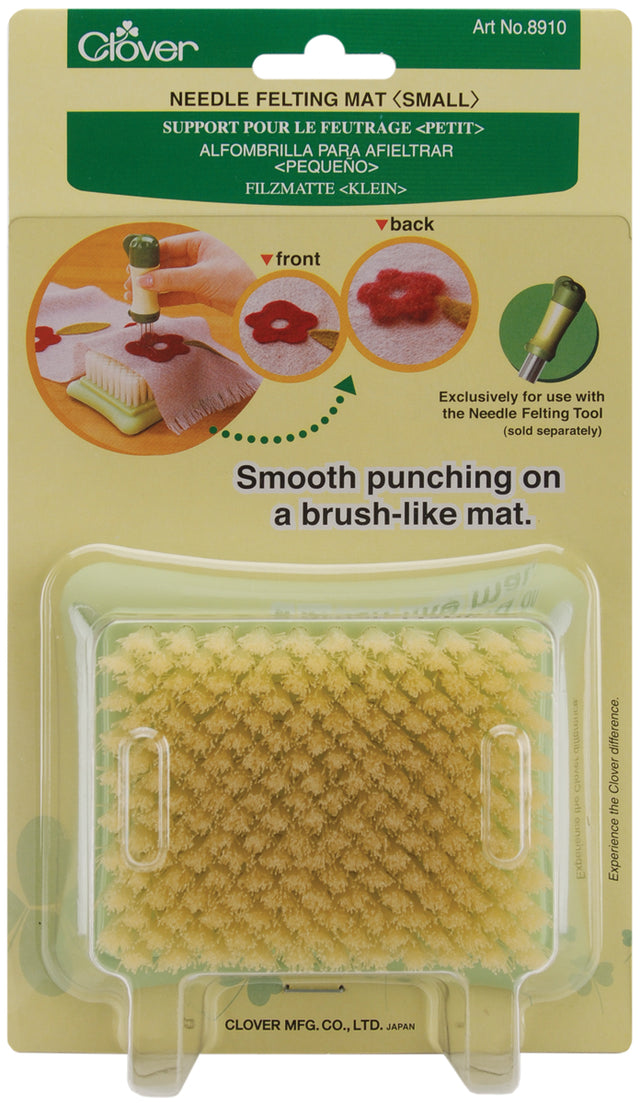 CLOVER-Felting Needle Mat. Small: 4-1/2Lx3-3/4Wx1-3/4D. Smooth consistent punching on a brush-like mat. Provides a soft work surface for needle punching.
