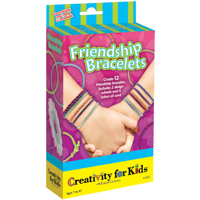 CREATIVITY FOR KIDS-Friendship Bracelets. Create twelve friendship bracelets. This package contains two foam weaving wheels, 46 yards of embroidery floss, 23 yards of metallic embroidery floss, instructions and ideas. For ages 7 and up. Imported.