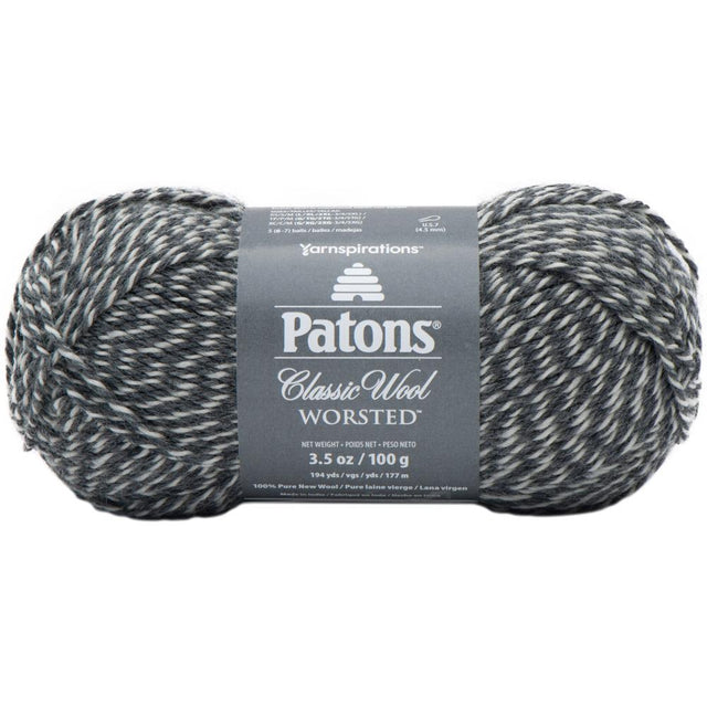 PATONS-Classic Wool. Patons Classic Wool Worsted really is a classic yarn. This 100% wool yarn is worsted weight, making it incredibly versatile for so many different projects! Try Class Wool Worsted out when you start your next sweater or blanket pattern and we think you'll fall in love. Available in a wide shade range that covers everything from neutrals to neons, any knit or crochet project made in this yarn will be an heirloom! Keep your warm, woolly projects looking beautiful by handwashing them and laying them flat to dry, so everyhing you make can last a lifetime. Weight category: 4. Content: 100% wool. Putup: 3.5oz/100g, 194yd/177m. Gauge: 20sx26r = 4in/10cm on size US7/4.5mm knitting needles. Suggested crochet hook: USH8/5mm. Dyelotted: we try but are not always able to match dyelots. Care: hand wash, dry flat. Comes in a variety of colors. Each sold separately. Imported.