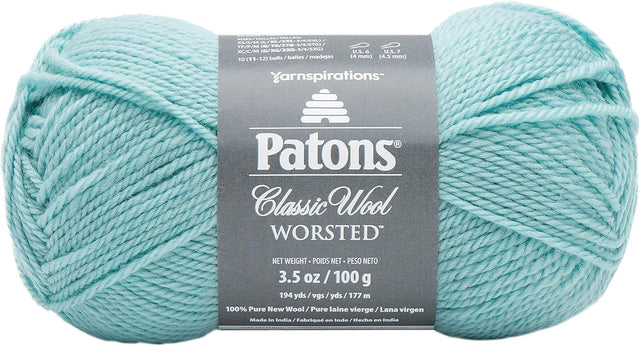 PATONS-Classic Wool. Patons Classic Wool Worsted really is a classic yarn. This 100% wool yarn is worsted weight, making it incredibly versatile for so many different projects! Try Class Wool Worsted out when you start your next sweater or blanket pattern and we think you'll fall in love. Available in a wide shade range that covers everything from neutrals to neons, any knit or crochet project made in this yarn will be an heirloom! Keep your warm, woolly projects looking beautiful by handwashing them and laying them flat to dry, so everyhing you make can last a lifetime. Weight category: 4. Content: 100% wool. Putup: 3.5oz/100g, 194yd/177m. Gauge: 20sx26r = 4in/10cm on size US7/4.5mm knitting needles. Suggested crochet hook: USH8/5mm. Dyelotted: we try but are not always able to match dyelots. Care: hand wash, dry flat. Comes in a variety of colors. Each sold separately. Imported.