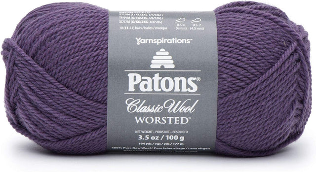 PATONS-Classic Wool. Patons Classic Wool Worsted really is a classic yarn. This 100% wool yarn is worsted weight, making it incredibly versatile for so many different projects! Try Class Wool Worsted out when you start your next sweater or blanket pattern and we think you'll fall in love. Available in a wide shade range that covers everything from neutrals to neons, any knit or crochet project made in this yarn will be an heirloom! Keep your warm, woolly projects looking beautiful by handwashing them and laying them flat to dry, so everyhing you make can last a lifetime. Weight category: 4. Content: 100% wool. Putup: 3.5oz/100g, 194yd/177m. Gauge: 20sx26r = 4in/10cm on size US7/4.5mm knitting needles. Suggested crochet hook: USH8/5mm. Dyelotted: we try but are not always able to match dyelots. Care: hand wash, dry flat. Comes in a variety of colors. Each sold separately. Imported.