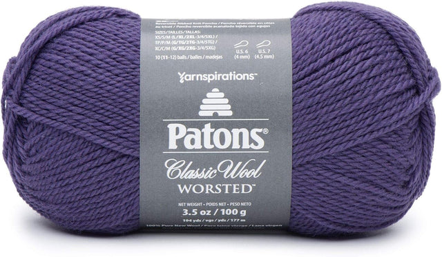 PATONS-Classic Wool. Patons Classic Wool Worsted really is a classic yarn. This 100% wool yarn is worsted weight, making it incredibly versatile for so many different projects! Try Class Wool Worsted out when you start your next sweater or blanket pattern and we think you'll fall in love. Available in a wide shade range that covers everything from neutrals to neons, any knit or crochet project made in this yarn will be an heirloom! Keep your warm, woolly projects looking beautiful by handwashing them and laying them flat to dry, so everyhing you make can last a lifetime. Weight category: 4. Content: 100% wool. Putup: 3.5oz/100g, 194yd/177m. Gauge: 20sx26r = 4in/10cm on size US7/4.5mm knitting needles. Suggested crochet hook: USH8/5mm. Dyelotted: we try but are not always able to match dyelots. Care: hand wash, dry flat. Comes in a variety of colors. Each sold separately. Imported.