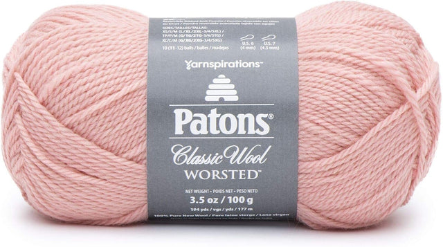PATONS-Classic Wool. Patons Classic Wool Worsted really is a classic yarn. This 100% wool yarn is worsted weight, making it incredibly versatile for so many different projects! Try Class Wool Worsted out when you start your next sweater or blanket pattern and we think you'll fall in love. Available in a wide shade range that covers everything from neutrals to neons, any knit or crochet project made in this yarn will be an heirloom! Keep your warm, woolly projects looking beautiful by handwashing them and laying them flat to dry, so everyhing you make can last a lifetime. Weight category: 4. Content: 100% wool. Putup: 3.5oz/100g, 194yd/177m. Gauge: 20sx26r = 4in/10cm on size US7/4.5mm knitting needles. Suggested crochet hook: USH8/5mm. Dyelotted: we try but are not always able to match dyelots. Care: hand wash, dry flat. Comes in a variety of colors. Each sold separately. Imported.
