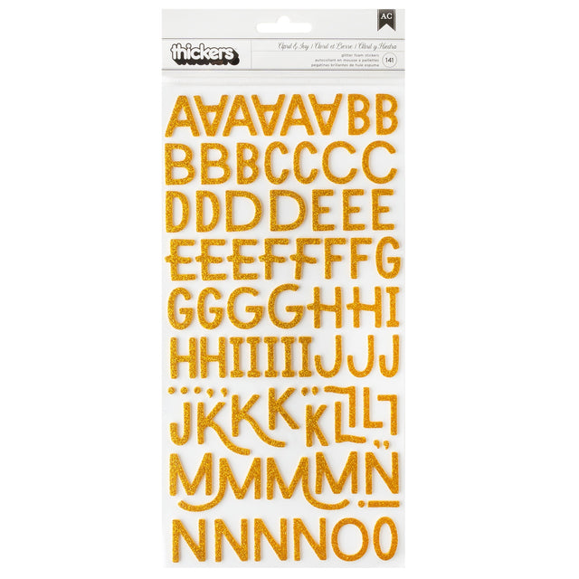 American Crafts April And Ivy Thickers Stickers 141/Pkg-Alpha, Gold Glitter is backordered and will ship as soon as it is back in stock.