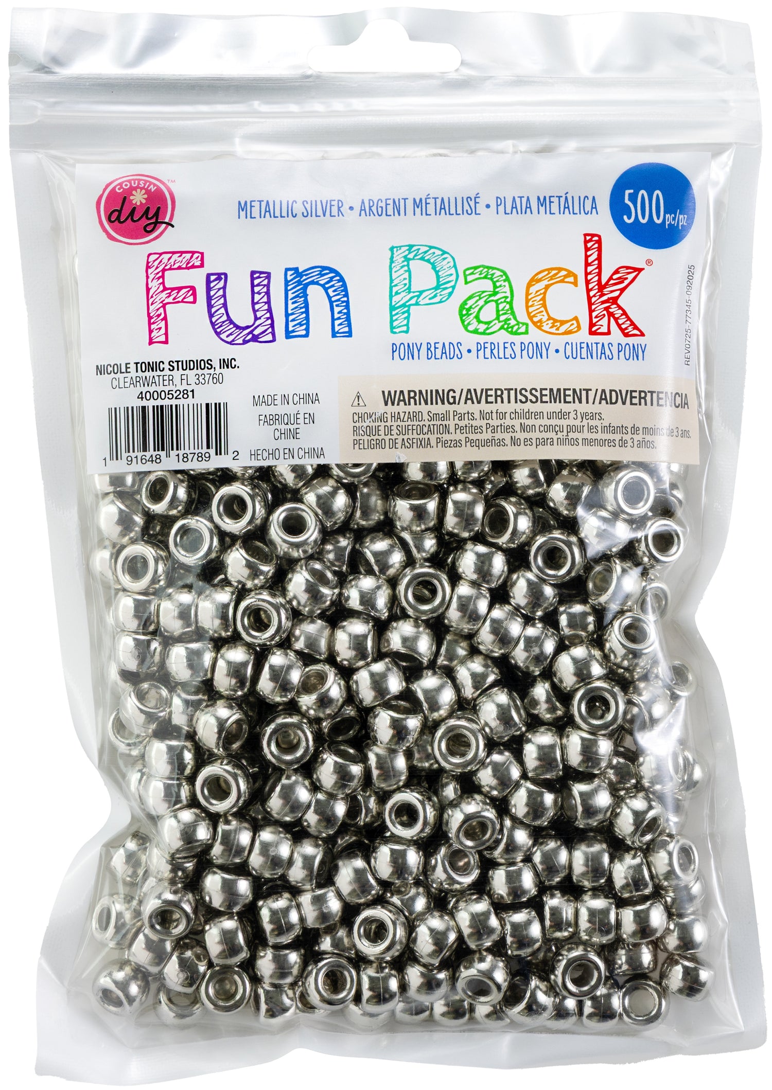 CousinDIY Pony Beads 6mmX9mm 500/Pkg-Metallic Silver is backordered and will ship as soon as it is back in stock.
