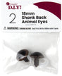 Bring animals to life with these realistic eyes, attachable through fabric. This package contains two 18mm shank back eyes. WARNING: Choking Hazard. Not suitable for children under 3 years. Imported.