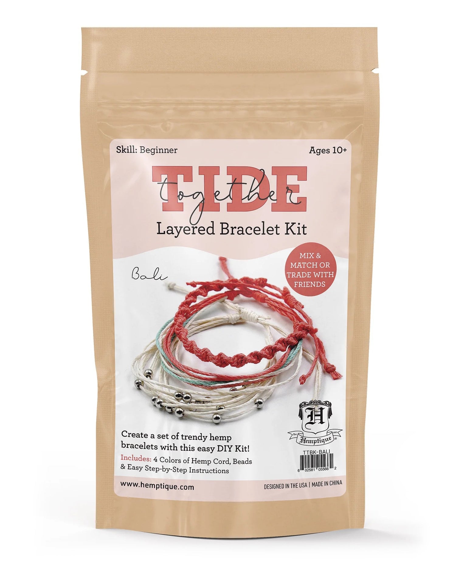 Create your own hemp cord bracelets with DIY hemp bracelet kits! Each kit contains enough hemp cord and findings needed to create 3 layered hemp bracelets. Also includes extra hemp cord to practice with or make more bracelets! Included is a step-by-step booklet with instructions to make all 6 styles of bracelets from the Tied Together Collection. A great project for all skill levels including beginners. Fun to wear and even more fun to make, layered hemp bracelets look stylish with any outfit and are perfect for a night out or a day at the beach! This package contains one Hemptique Tide Together Layered Bracelet Kit. Available in a variety of colors, each sold separately. Imported.