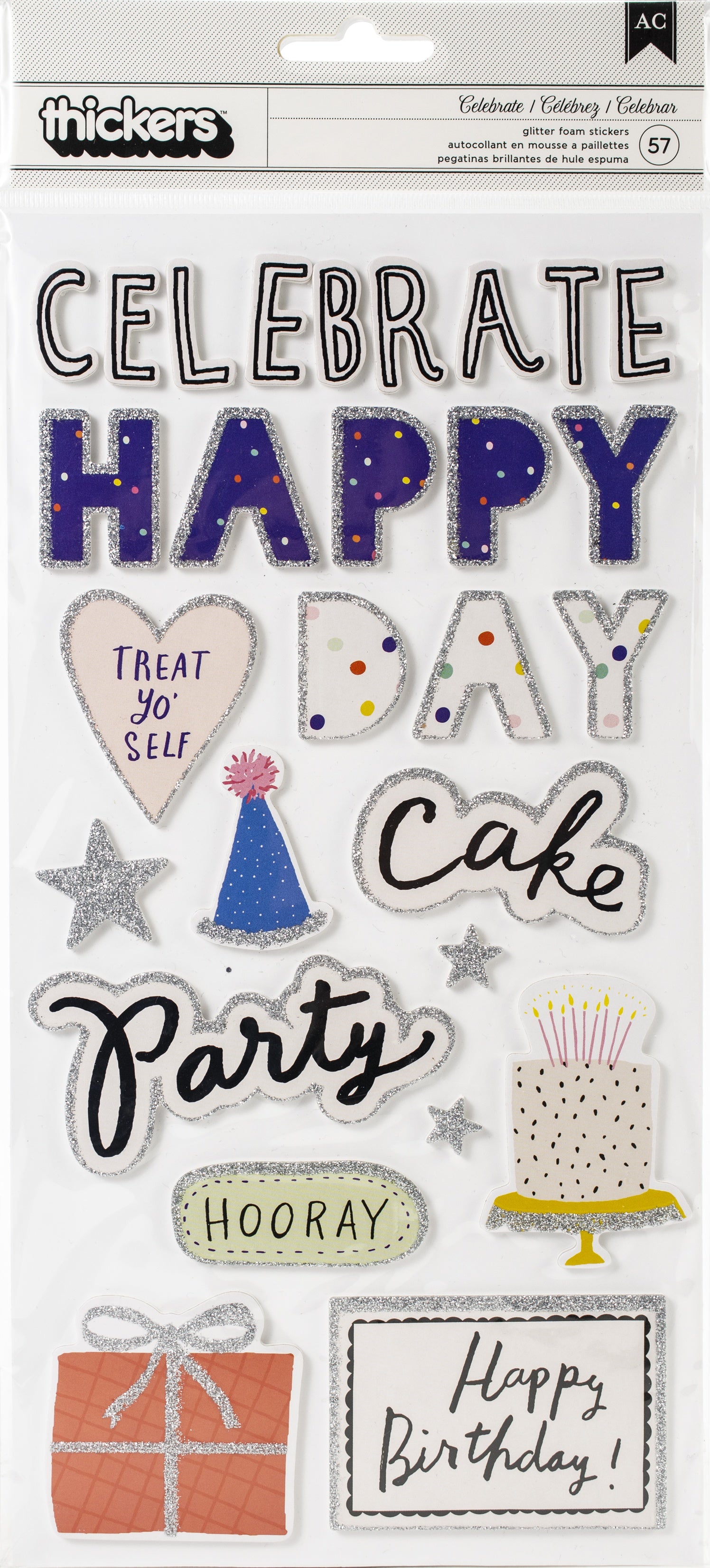 Give your next project some flair! This 5.75x12.75 inch package contains 57 glitter foam stickers. WARNING: Choking Hazard. Not suitable for children under 3 years. Imported.