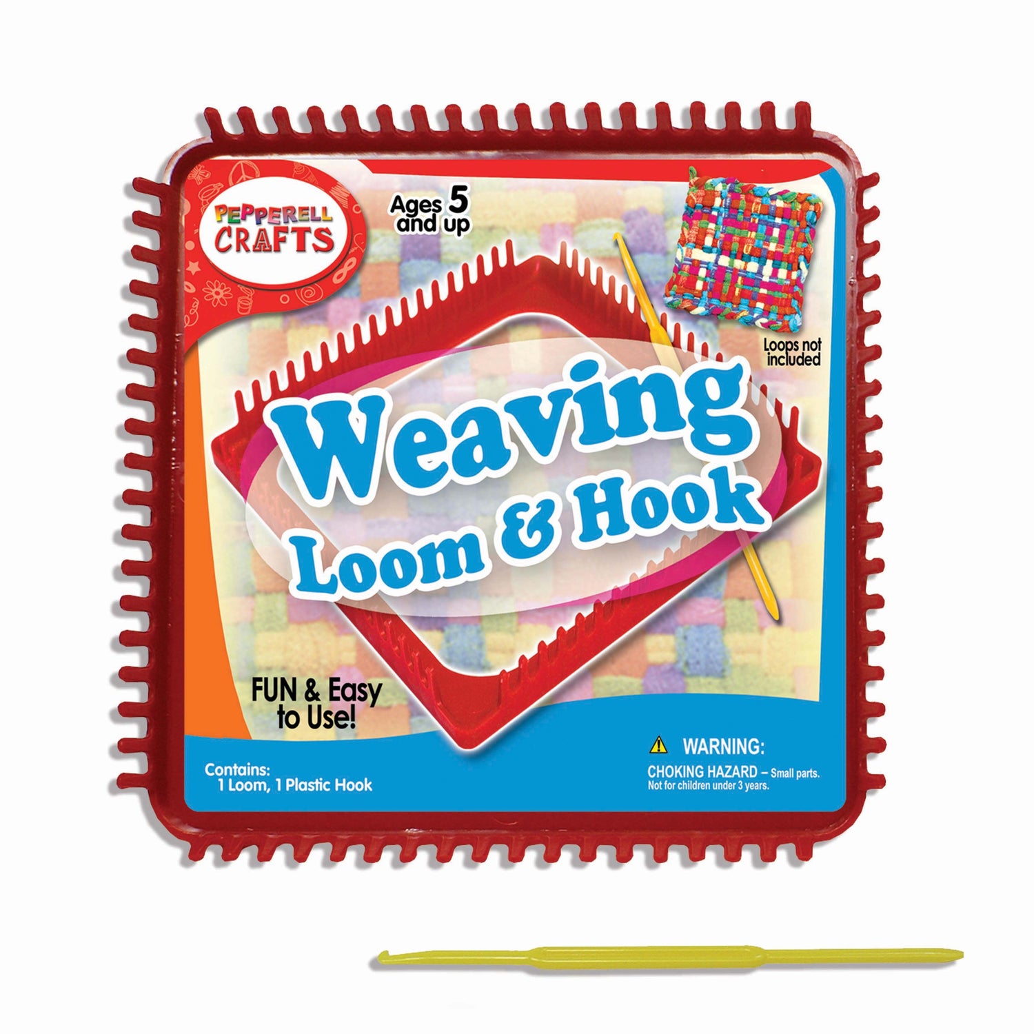 Create a colorful pot holder! This plastic loom and hook set is fun and easy to use, loops sold separately. This package contains 7.25X7.25 inch loom and 1 plastic hook. Pot holder use limited to plastic handle cookware and as a mat for trays, dishes and mugs. CAUTION: do not use finished potholder near flame or allow contact with hot cookware (including metal handle). Ages 5 and up. WARNING: Choking Hazard
